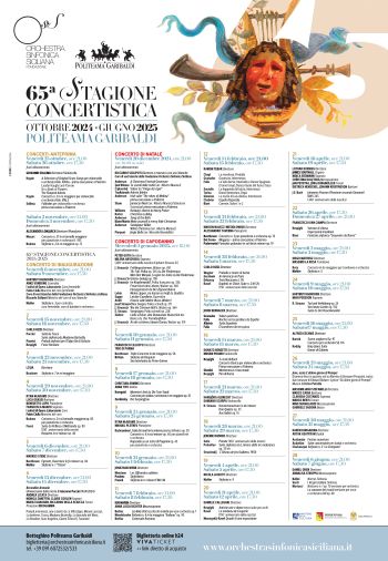 Sarà la Stagione n. 65 quella 2024/2025 dell’Orchestra Sinfonica Siciliana: un nuovo traguardo per l’importante compagine musicale che sarà impegnata, da novembre a giugno, con 28 diversi programmi settimanali nei consueti concerti del venerdì sera (ore 21.15) e del sabato pomeriggio (ore 17.30) al Politeama Garibaldi, cui si aggiungono due appuntamenti “in anteprima” oltre al Concerto di Natale e a quello di Capodanno.