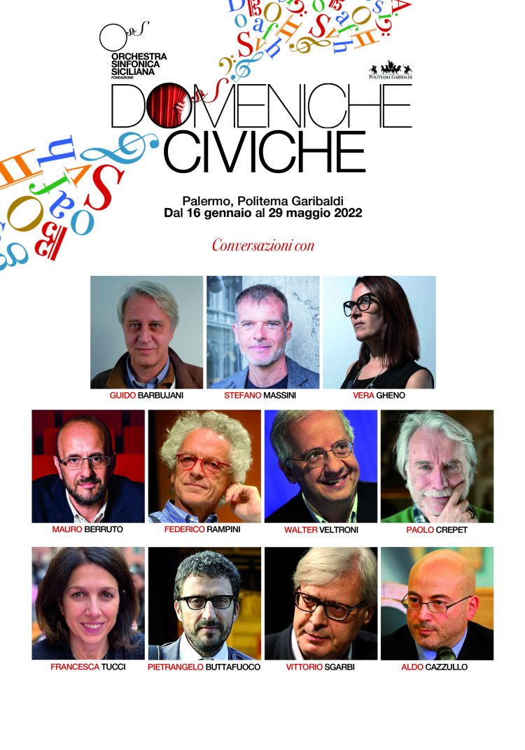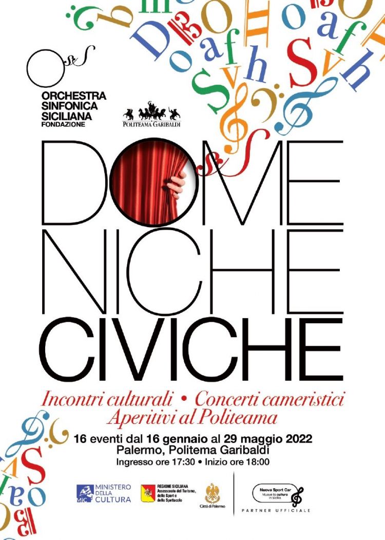 Ideato dalla direttrice artistica dell’Orchestra Sinfonica Siciliana, Gianna Fratta, Domeniche Civiche nasce nell’ottica di pensare a una programmazione trasversale e multidisciplinare che accompagni la già nutrita stagione sinfonica e aprire sempre più alla città una delle strutture architettoniche più belle, il Politeama Garibaldi.