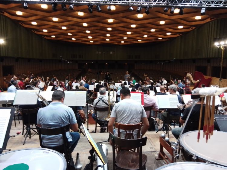 Dalle parole ai fatti; dopo dodici mesi da quell’annuncio fatto a tutta l’orchestra, ecco che l’OSS è in sala di incisione per una doppia incisione discografica, l’una diretta da Giovanni Sollima e l’altra dalla stessa direttrice artistica Gianna Fratta.