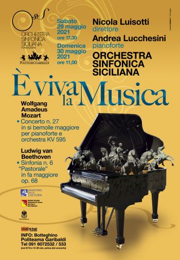 Concerto n.27 per pianoforte e orchestra KV 595 di Wolfgang Amadeus Mozart e Sinfonia n. 6 (Pastorale) di Ludwig van Beethoven sono le musiche in programma nei concerti di sabato 29 (ore 17.30) e domenica 30 maggio (ore 11). Al pianoforte Andrea Lucchesini, musicista apprezzato sin da giovanissimo nel panorama internazionale con la vittoria del Concorso Internazionale “Dino Ciani” presso il Teatro alla Scala di Milano. Suona da allora in tutto il mondo con orchestre prestigiose ed i più grandi direttori, suscitando l’entusiasmo del pubblico per la combinazione tra solidità di impianto formale nelle sue esecuzioni, estrema cura del suono, raffinatezza timbrica e naturale capacità comunicativa. A dirigere l’Orchestra Sinfonica Siciliana torna Nicola Luisotti, protagonista a dicembre dei concerti in streaming della FOSS. Direttore Ospite Principale del Teatro Real di Madrid, Luisotti è stato Direttore Musicale dell'Opera di San Francisco dal 2009 al 2018, dove ha diretto oltre quaranta produzioni tra opere e concerti dal suo debutto nel 2005. Nel 2018 è stato insignito della San Francisco Opera Medal per i suoi meriti artistici. Brillante interprete anche nel repertorio sinfonico, ha collaborato con varie orchestre sinfoniche tra cui San Francisco Symphony, Filarmonica della Scala, Cleveland Orchestra, Philadelphia Orchestra, Atlanta Symphony, London Philharmonia Orchestra, Orchestre de Paris, Filarmonica di Berlino, Bavarian Radio Orchestra, Orchestra di Santa Cecilia di Roma, Orchestra Sinfonica di Madrid, Orchestra del Teatro Regio di Torino, Tokyo Symphony e NHK Orchestra.