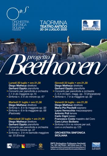 Tutto pronto per Taormina, lunedì si parte con un’intensa settimana dedicata a Ludwig van Beethoven. Dal 20 al 24 luglio l’Orchestra Sinfonica Siciliana diretta dal venezuelano Diego Matheuz aprirà la stagione 2020 del Teatro Antico di Taormina con la presenza anche di uno dei massimi esperti e conoscitori del compositore tedesco a livello internazionale, il pianista Gerhard Oppitz. Per la Nona Sinfonia è prevista la partecipazione straordinaria del Coro Lirico Siciliano e Maria Pia Piscitelli soprano, Laura Verrecchia contralto, Antonio Poli tenore e Carlo Cigni basso.