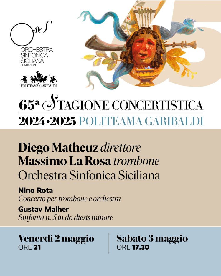 Matheuz guiderà l’Orchestra in un programma che si aprirà con il Concerto per trombone e orchestra di Nino Rota, solista Massimo La Rosa, primo trombone del Teatro Massimo di Palermo, seguito dalla celebre Sinfonia n. 5 di Gustav Mahler.