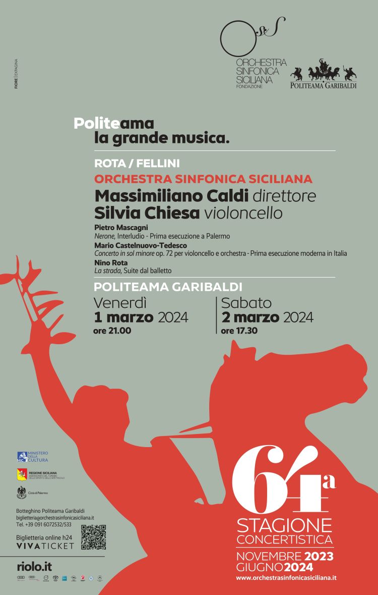 Saranno il direttore Massimiliano Caldi insieme alla violoncellista Silvia Chiesa e ai professori dell’Orchestra Sinfonica Siciliana i protagonisti del nuovo appuntamento con i concerti della stagione al Politeama Garibaldi di Palermo, venerdì (1 marzo alle 21) e sabato (2 marzo alle 17.30). Tra i brani due prime esecuzioni con il palcoscenico del Teatro che diventa protagonista della riscoperta di un compositore del Novecento italiano, Mario Castelnuovo Tedesco di cui la Chiesa è la prima promotrice. Il “Concerto per violoncello”, infatti, è stato eseguito per l’ultima volta in Italia alla fine degli anni Venti. Quasi un secolo dopo la Chiesa lo ha riscoperto grazie agli eredi del compositore e l’ha inciso con l’Orchestra Sinfonica Nazionale della RAI (Sony Classical).