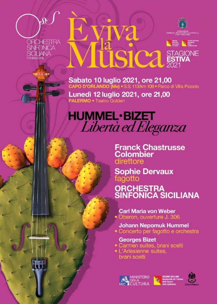 La musica dell'OSS prosegue, nel fine settimana, con una produzione sinfonica dedicata a Weber, Hummel e Bizet: sabato 10 luglio al Parco di Villa Piccolo a Capo d'Orlando (Messina) e lunedì 12 luglio all'Auditorium Cinema Teatro Golden (via Terrasanta, 60) a Palermo, entrambi i concerti alle ore 21.