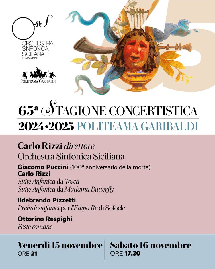 Il programma si apre proprio con due suite sinfoniche da due celebri opere di Giacomo Puccini, Tosca e Madama Butterfly realizzate, in occasione del centenario del compositore, dallo stesso Rizzi che ha dichiarato: «Spero che coloro che già amano Tosca e Butterfly si godranno l’opportunità di concentrarsi interamente sull’orchestra mentre ascoltano, e che le persone che sono abitualmente più attratte dalla sala da concerto che dal teatro d’opera saranno ricompensate esplorando qualcosa di nuovo. Alla fine, il mio unico obiettivo è quello di condividere e celebrare Puccini con tutti». Seguiranno i Tre Preludi sinfonici scritti da Ildebrando Pizzetti per l’Edipo Re di Sofocle, su incarico del famoso attore Gustavo Salvini al quale Pizzetti in precedenza aveva dedicato un’Ouverture per l’Edipo a Colono e che furono eseguiti per la prima volta il 1° marzo del 1903. Pizzetti era fermamente convinto che ogni opera teatrale, essendo formata di parole, necessitava di essere integrata dalla musica a condizione che il testo superi la realtà quotidiana per assumere un carattere universale. In conclusione, di Ottorino Respighi, Feste romane del 1928 che, insieme a Fontane di Roma e Pini di Roma, non è solo l’ultimo poema sinfonico della cosiddetta trilogia romana, ma è anche la sua ultima opera orchestrale. Come scrive Riccardo Viagrande nelle note di sala: «Eseguito per la prima volta alla Carnegie Hall di New York, il 21 Febbraio 1929, anche quest’ultimo poema sinfonico è diviso in quattro quadri rappresentanti quattro diverse feste che si svolgevano nella città eterna. In questo poema non ha nessuna importanza se una festa pagana ed antica, come quella rappresentata in Circenses, si mescola a quella religiosa del Giubileo, in quanto unico denominatore e fonte di unità dell’intero poema è Roma».