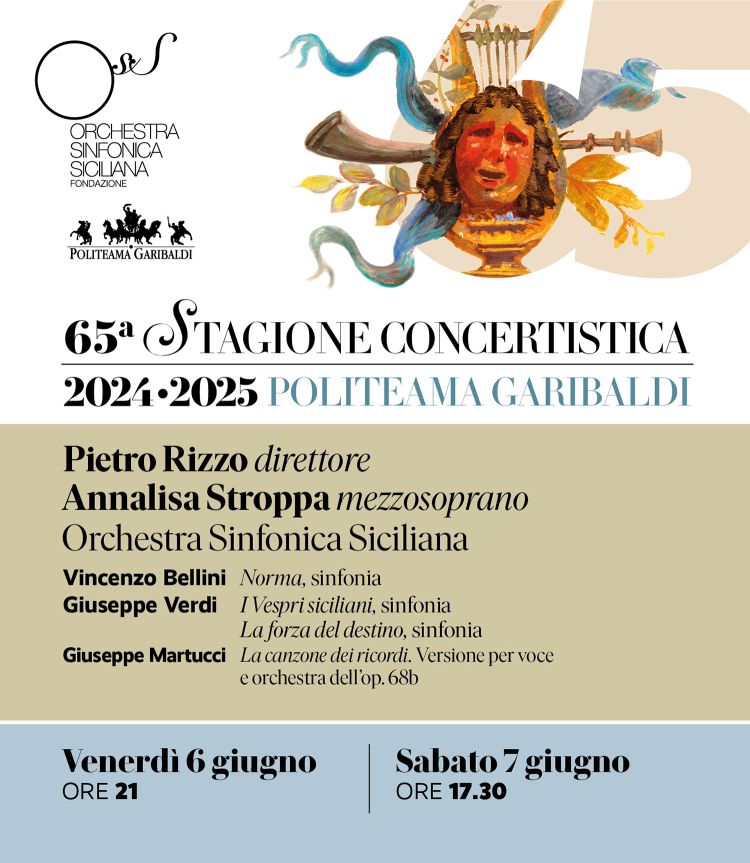 Sarà un programma di grande intensità lirica ed espressiva a concludere la 65ª Stagione dell’Orchestra Sinfonica Siciliana: venerdì 6 giugno (ore 21) e sabato 7 giugno (ore 17.30), sul podio del Politeama Garibaldi salirà Pietro Rizzo, direttore tra i più affermati della sua generazione, attivo nei principali teatri internazionali (sostituisce l’annunciato Daniel Oren indisposto). Protagonista vocale del concerto sarà il mezzosoprano Annalisa Stroppa, interprete di riferimento del repertorio italiano e belcantistico.