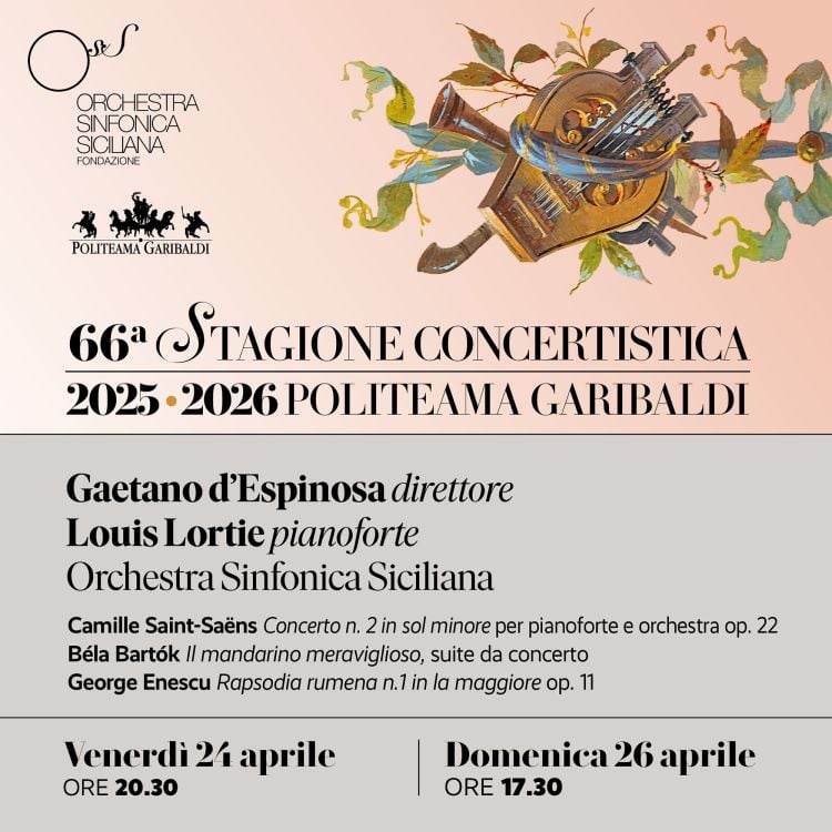 Sono tra gli artisti ospiti della 66ª Stagione della Fondazione Sinfonica Siciliana più attesi, i protagonisti dei prossimi concerti, in programma al Politeama Garibaldi venerdì 24 aprile alle ore 20.30 e, eccezionalmente, domenica 26 aprile alle ore 17.30 (per la Festa nazionale del 25 aprile): sul podio salirà infatti Gaetano d’Espinosa, direttore palermitano oggi tra i più apprezzati interpreti italiani in campo operistico e sinfonico, mentre solista della serata sarà il celebre pianista canadese Louis Lortie, protagonista di una carriera internazionale ai massimi livelli. In programma il Concerto n. 2 in sol minore per pianoforte e orchestra op. 22 di Camille Saint-Saëns, la Suite da concerto op. 19 sz 73 dal Mandarino meraviglioso di Béla Bartók e la Rapsodia rumena n. 1 in la maggiore op. 11 di George Enescu.