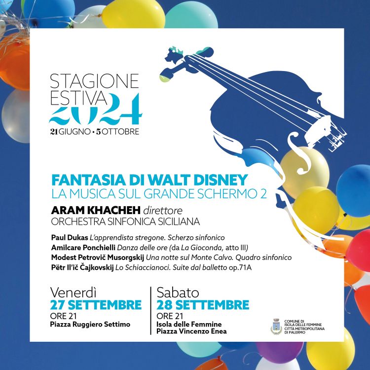 Le sinfonie del Cinema a Palermo e Isola delle Femmine con l’Orchestra Sinfonica Siciliana diretta da Aram Khacheh