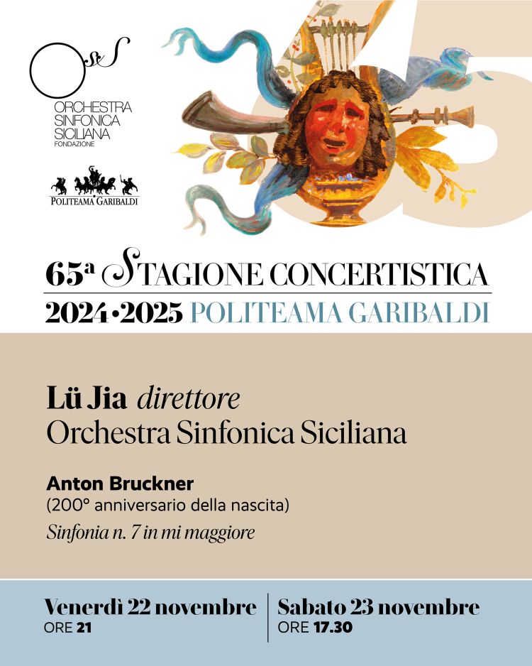 Nuova occasione celebrativa per il terzo programma della 65a Stagione concertistica dell’Orchestra Sinfonica Siciliana 2024/2025: venerdì 22 (ore 21) e sabato 23 novembre (ore 17.30) al Politeama Garibaldi omaggio al compositore austriaco Anton Bruckner, nel 200° anniversario della nascita, con l’esecuzione della celebre Sinfonia n. 7 in mi maggiore WAB 107 diretta da Lü Jia celebre direttore, nativo di Shanghai ma naturalizzato italiano, oggi Direttore artistico della musica del National Centre for the Performing Arts (NCPA) e Direttore musicale della China NCPA Orchestra. Proprio alcuni giorni fa ha diretto il Gala dell’Opera Italiana al NCPA di Pechino alla presenza del Presidente cinese Xi Jinping e del Presidente italiano Sergio Mattarella.
