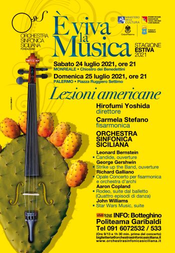Da Bernstein a Gershwin passando per Galliano e Copland e concludendo con Williams. Saranno i più celebri brani di questi compositori i protagonisti della prossima produzione del cartellone estivo della FOSS, che porterà le sonorità americane in uno dei luoghi più suggestivi di Monreale, il Chiostro dei Benedettini, sabato 24 luglio alle ore 21, e in replica alla stessa ora a Palermo domenica 25 in piazza Ruggiero Settimo.