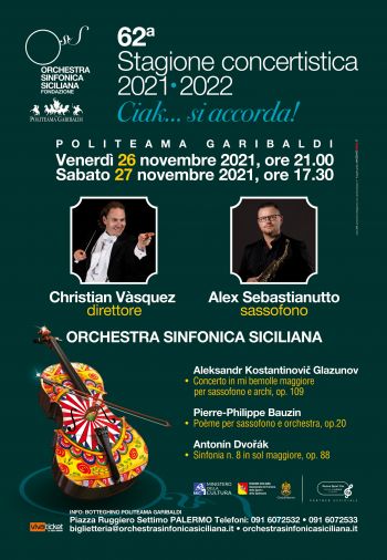 Strumento non molto usuale nei concerti di musica “classica”, il sassofono, con il suo interprete Alex Bastianutto, eccellenza italiana del panorama internazionale, sarà solo uno dei protagonisti del concerto di venerdì 26 novembre (ore 21.00; replica sabato 27 ore 17.30) dell’Orchestra Sinfonica Siciliana, che procede così nel suo percorso programmatico della Stagione 2021-2022, riscuotendo successo e entusiasmo da parte del pubblico sempre più numeroso al Politeama Garibaldi.