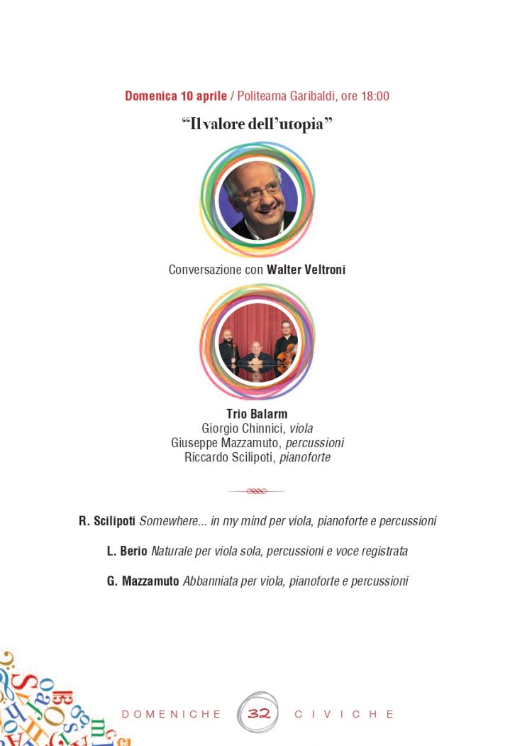 Il valore dell’Utopia è il titolo della conversazione di Walter Veltroni, ospite domenica 10 aprile delle Domeniche Civiche