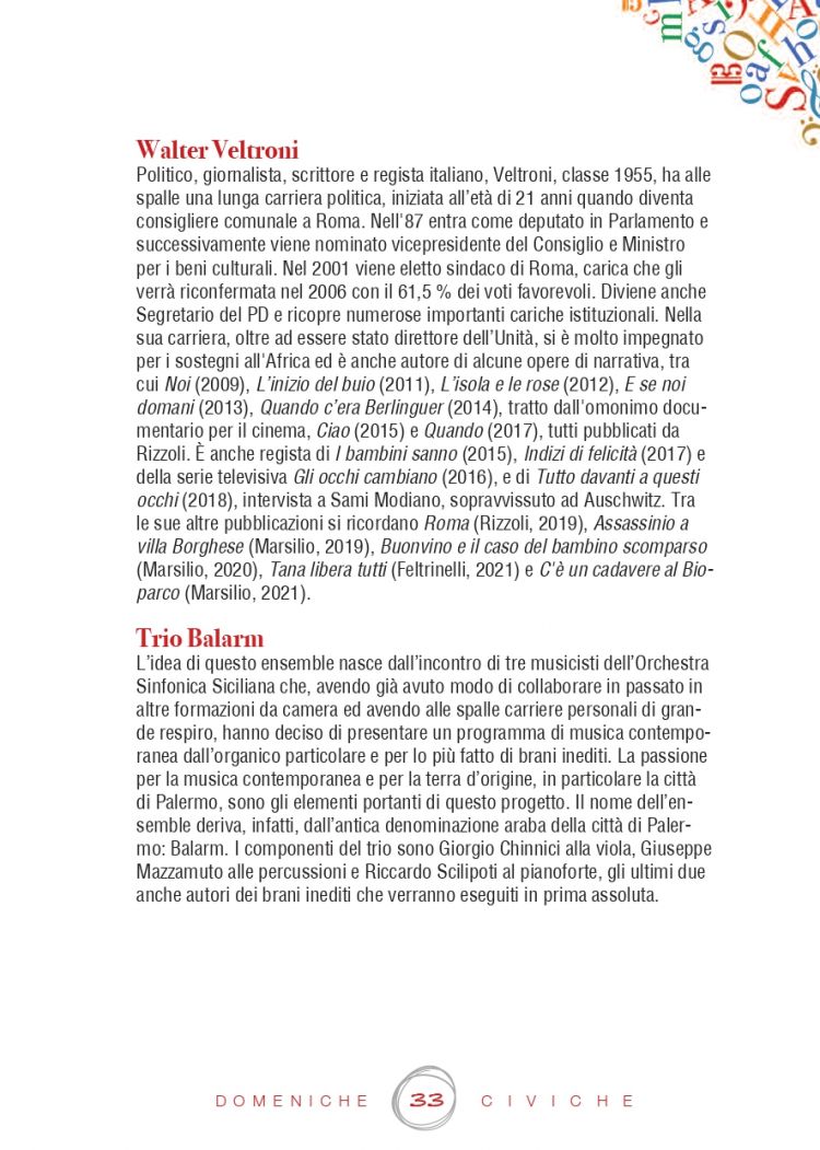 Walter Veltroni & Balarm Trio per le "Domeniche Civiche"