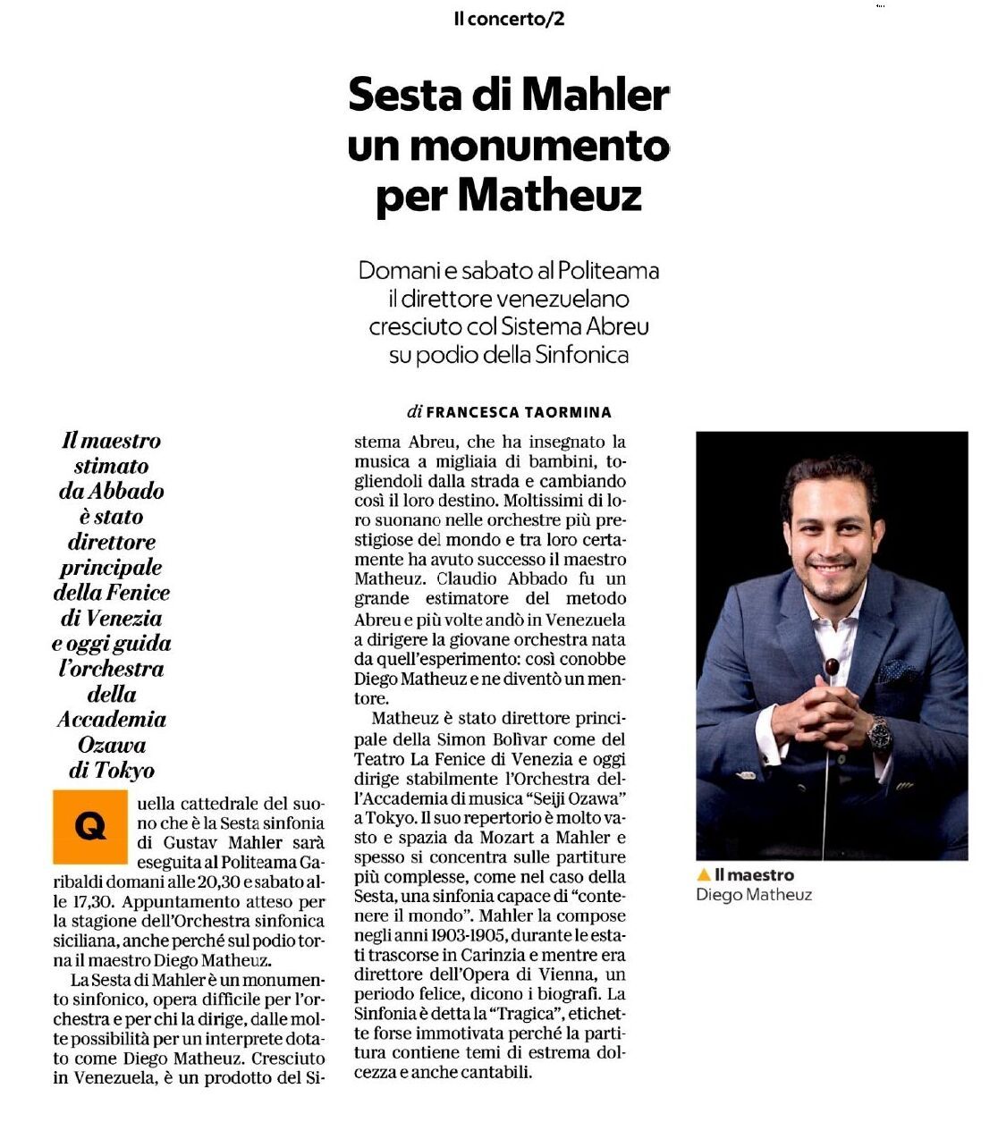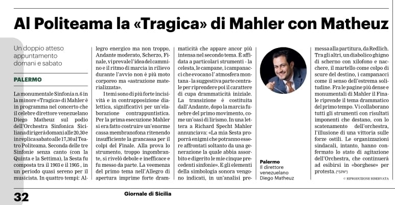 La monumentale Sinfonia n. 6 in la minore “Tragica” di Mahler diretta da Diego Matheuz