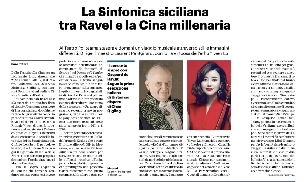 Tra la Francia simbolista di Ravel e la tradizione musicale cinese. Dirige Laurent Petitgirard
