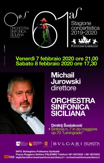L’Orchestra Sinfonica Siciliana, diretta da Michail Jurowski, presenta venerdì 7 febbraio alle ore 21 e sabato 8 febbraio alle ore 17,30 al Politeama Garibaldi, la monumentale Sinfonia n. 7 in do maggiore op. 70 "Leningrado" che Dmitrij Šostakovič compose per commemorare l’assedio della Città, la vittoria del popolo russo e la memoria dei suoi eroi.